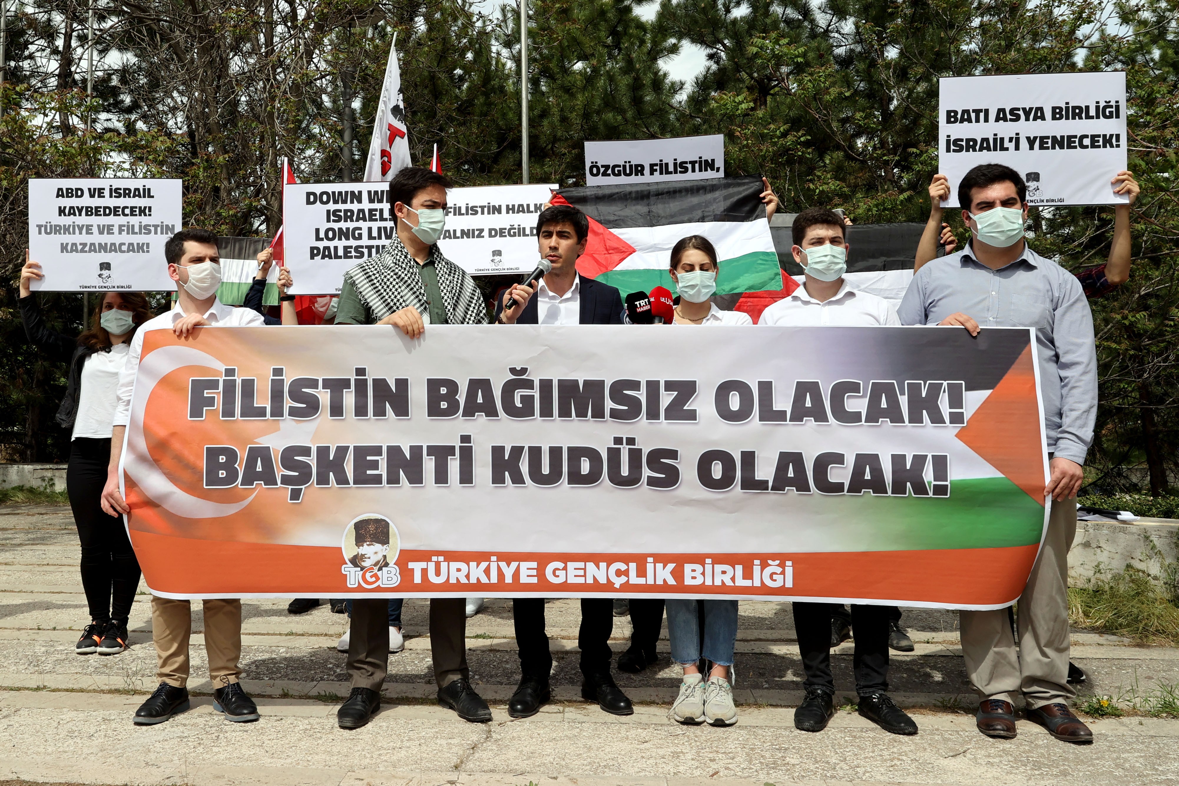 Türkiye Gençlik Birliği üyeleri, İsrail polisinin, işgal altındaki Doğu Kudüs'ün Eski Şehir bölgesindeki Mescid-i Aksa'da cemaate yönelik saldırısını protesto etti.