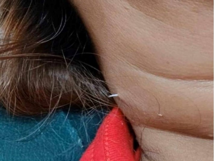 Ağrıyı hafifletmek için boynuna ağrı bandı yapıştırmak isteyen kadın, şiş olan bölgeyi ovuştururken derinin altında sivri bir ucun dışarı doğru ittiğini hissetti. Bir süre bastırdıktan sonra cilt yüzeyini delen kılçık dışarı çıktı.