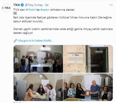 Türk İşbirliği ve Koordinasyon Ajansı Başkanlığı (TİKA) tarafından Filistin’in Beit Jala ilçesinde faaliyet gösteren Kültürel Mirası Koruma Kadın Derneğine sabun atölyesi kuruldu.