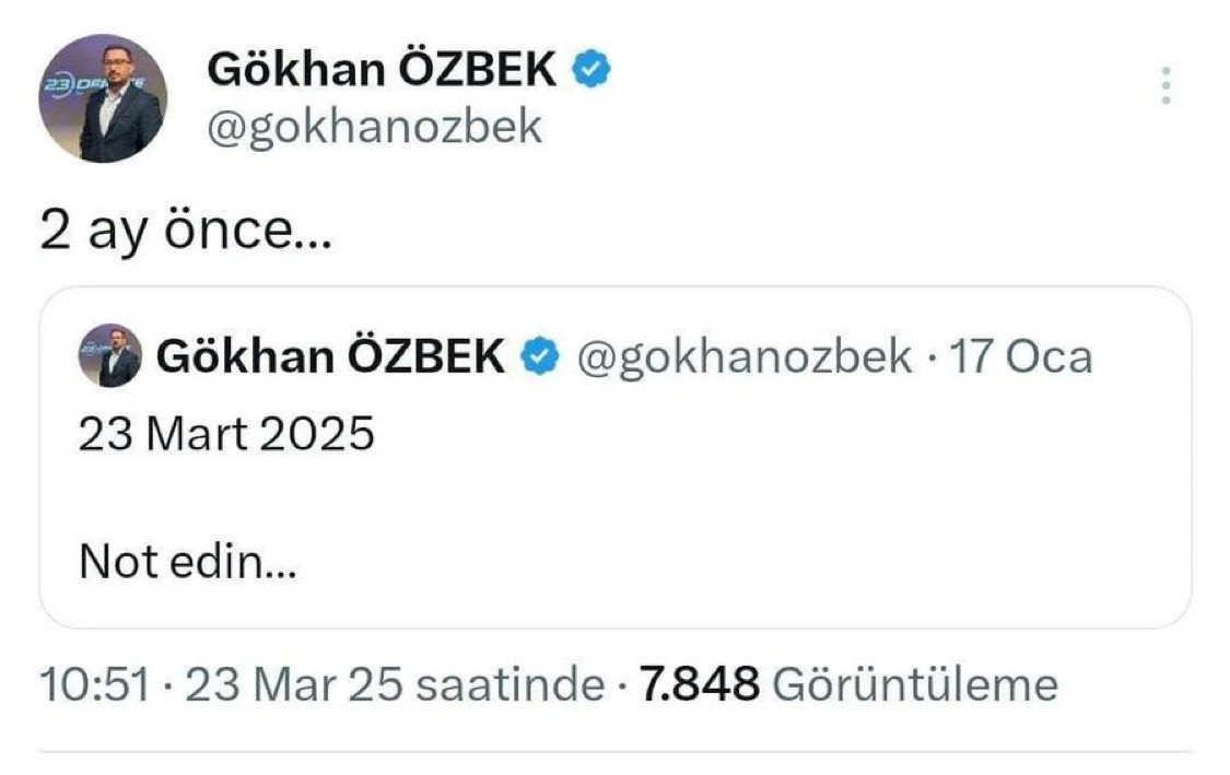 CHP eski Genel Başkanı Kemal Kılıçdaroğlu’nun iletişim danışmanı Gökhan Özbek'in, Ekrem İmamoğlu'nun tutuklanmasını 2 ay önceden ima ettiği ortaya çıktı.