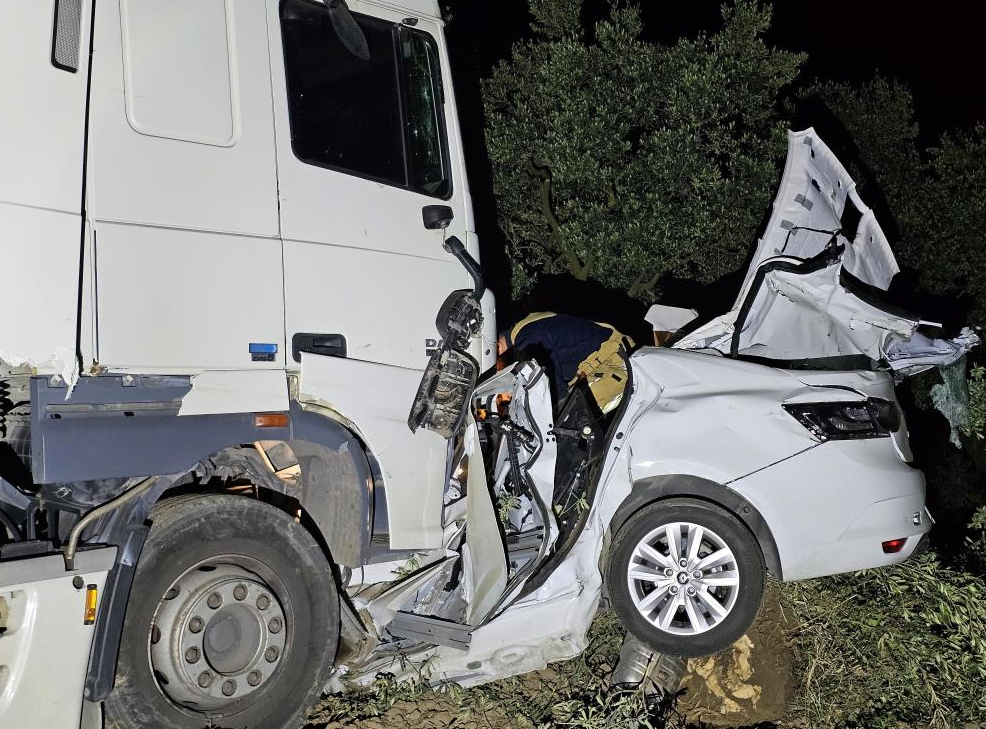 Bursa'nın Orhangazi ilçesinde meydana gelen kazada otomobili altına alan tır, yoldan çıkarak zeytin bahçesine daldı. Yaşanan kazada otomobil sürücüsü hayatını kaybetti.