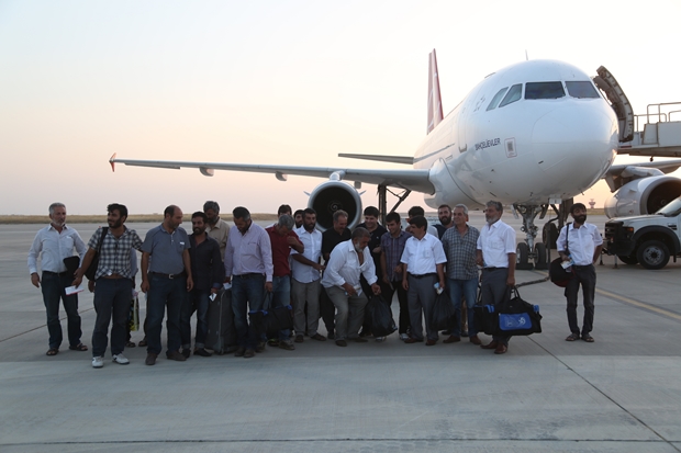 Irak'ın Musul kentinde, Irak Şam İslam Devleti (IŞİD) miensuplarınca 23 gün alıkonulduktan sonra serbest bırakılan 32 Türk tır şoförü, Türk Hava Yollarına (THY) ait özel uçakla Erbil'den Şanlıurfa'ya getirildi.