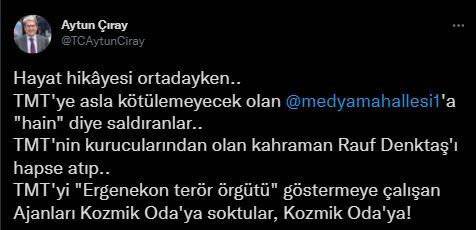 Ayşenur Arslan'ın hayat hikayesinin ortada olduğunu ve TMT'yi asla kötülemeyeceğini savunan Çıray şu paylaşımda bulundu: