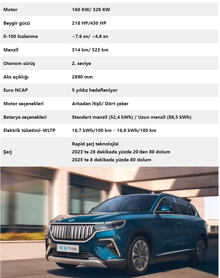 Togg T10X V1 ve V2 versiyon modellerinin teknik özellikleri ve detayları tablosu…