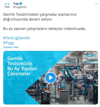 Paylaşıma göre, üç tesisten boya ve gövde tesislerinin yüzde 99'u tamamlandı. Montaj tesisinde ise tamamlanma oranı yüzde 98. Boya tesisi içindeki tanklarda kimyasal dolum aşamasına geçildi, basınçlı hava tesisatı, yumuşak su ve demineralize su sistemi ve soğutma ve ısıtma sistemleri kuruldu.