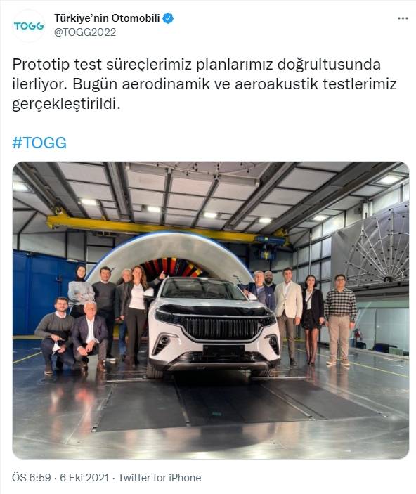 Yerli ve milli otomobilimiz TOGG’un aerodinamik test aşamasından bir paylaşım yapıldı. Bu paylaşım kısa sürede binlerce etkileşim aldı.