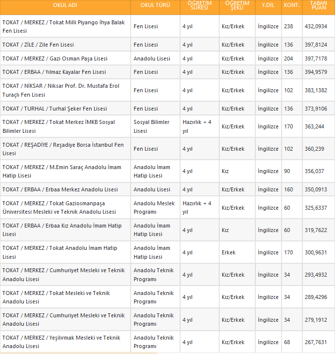 Tokat liseleri taban puanı ve yüzdelikleri için tıklayınız...