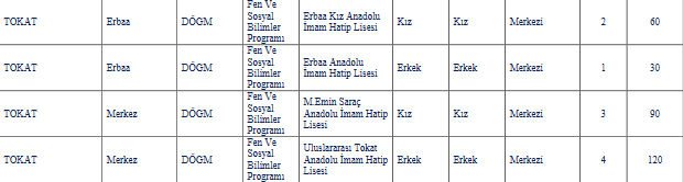 Tokat liseleri taban puanı 2021, Tokat liseleri başarı sıralaması ve liseleri kontenjanları nelerdir?
