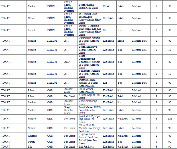 Tokat liselerinin kontenjan kapasitesi ne kadar?