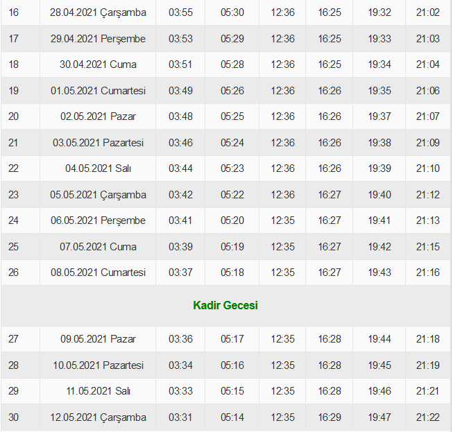 Ramazan ayı bu yıl 13 Nisan Salı günü başlayıp ve 12 Mayıs Çarşamba günü bitecek.