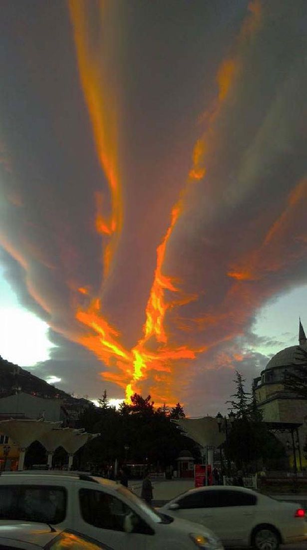 Tokat'ta dün akşam saatlerinde güneşin batımı ile gökyüzünde oluşan bulut görüntüsü görenleri bir hayli şaşırttı.