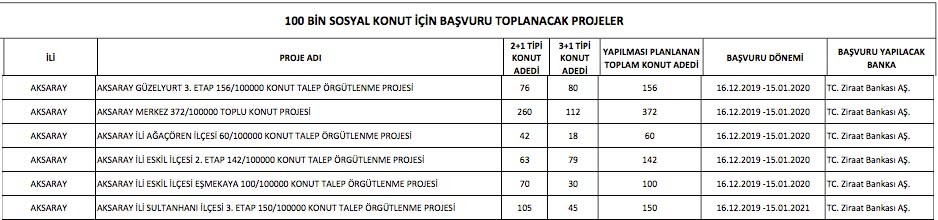 Toplu Konut İdaresi Başkanlığı tarafından 100 Bin Sosyal Konut Projesi kapsamında inşa ettirilecek konutlar için, T.C. Ziraat Bankası A.Ş.’nin Proje İlinde bulunan yetkili Şubeleri aracılığı ile başvurular kabul edilecektir.