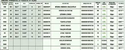 TOKİ Ankara Yenimahalle Yakacık kura sonuçları Yakacık TOKİ kura sonuçları isim listesi