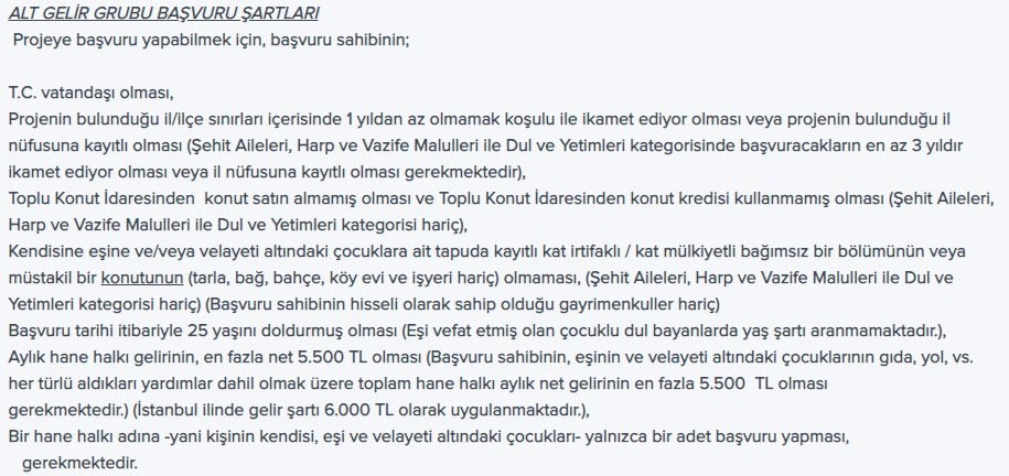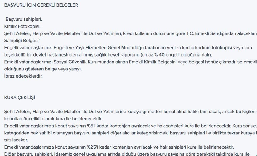 TOKİ başvuru şartları detayı için tıklayın.