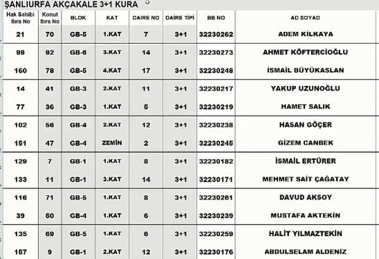 TOKİ Şanlıurfa Akçakale kura sonuçları Akçakale TOKİ kura sonuçları isim listesi