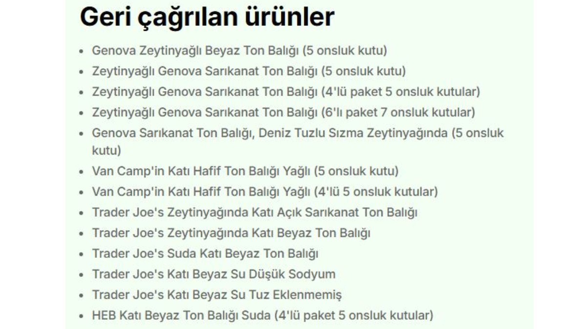 ABD’de sağlık güvenliği alarmı veren bu durum, konserve ton balıklarının tehlike yaratabileceğini gözler önüne serdi.