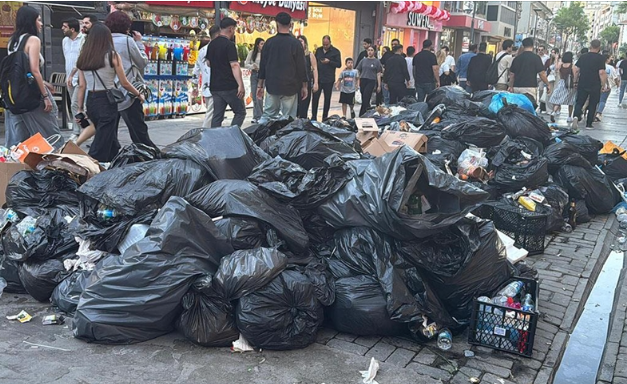 İzmir büyükşehir Belediyesi temizlik işçilerine hakkını vermeyince işçiler greve gitti. İzmir’in tamamı çöplüğe dönünce CHP’li yöneticiler çöpleri vatandaşlara toplatmaya başladı.