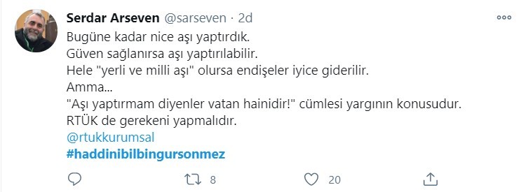 Aşı yaptıracak ve yaptırmayacaklar arasından kışkırtan açıklamalarda bulunan Bingür Sönmez, kuralları kendilerinin koyacağını ima ederek ahkam kesti ve "Ben aşı yaptırmam diyenler vatan haini! Onlara kız bile vermeyeceğiz. Resmi dairelere giremeyecekler. Okullara gidemeyecekler. İnsan vücudunun dokunulmazlığı nedeniyle mecbur etme şansımız yok ama kurallar koyacağız. Nasıl sokağa çıkmanın kuralları var, aşıda da kurallar koyacağız. Resmi daireler giremeyecekler, otobüslere binemeyecekler, toplu taşımadan faydalanamayacaklar. Başka bir çare yok." ifadelerini kullandı.
