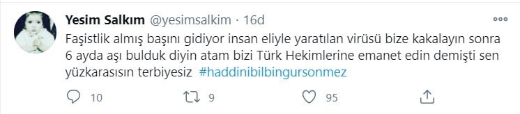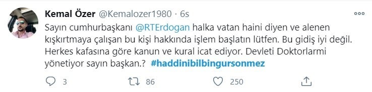 Sönmez'in açıklamalarının ardından birçok kesimden büyük tepki geldi. Sönmez'in provokatif açıklamalarına tepki gösteren vatandaşların "#haddinibilbingursonmez" etiketi, Twitter'da Türkiye gündemine yerleşirken on binlerce tweet atıldı.