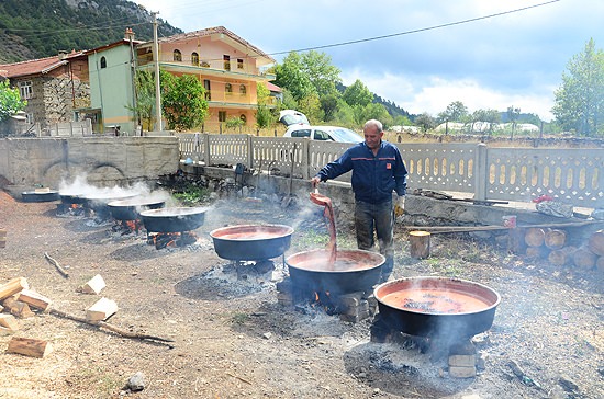 Uzun yıllardır pekmez üreten Halil Erdoğan da bu işin çok zahmetli olduğunu, 4-5 kişinin yardımıyla yapılabildiğini dile getirdi.