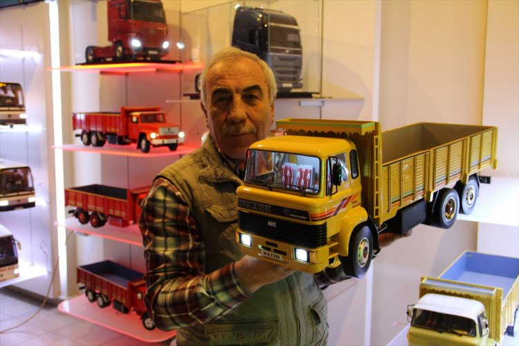 Aydın'da yaşayan 63 yaşındaki İsmail Erzurumluoğlu, emekli olduktan sonra torunları oynasın diye yaptığı el emeği kamyon, otobüs gibi maket araçlarına dünyanın pek çok ülkesinden talep gelince galeri kurup ihracatına başladı.