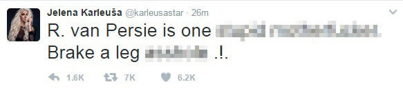 Dün oynanan Beşiktaş Fenerbahçe maçının ardından Beşiktaşlı futbolcu Tosic'in eşi Jelena Karleusa, twitter hesabından Van Persie'ye küfür etti.