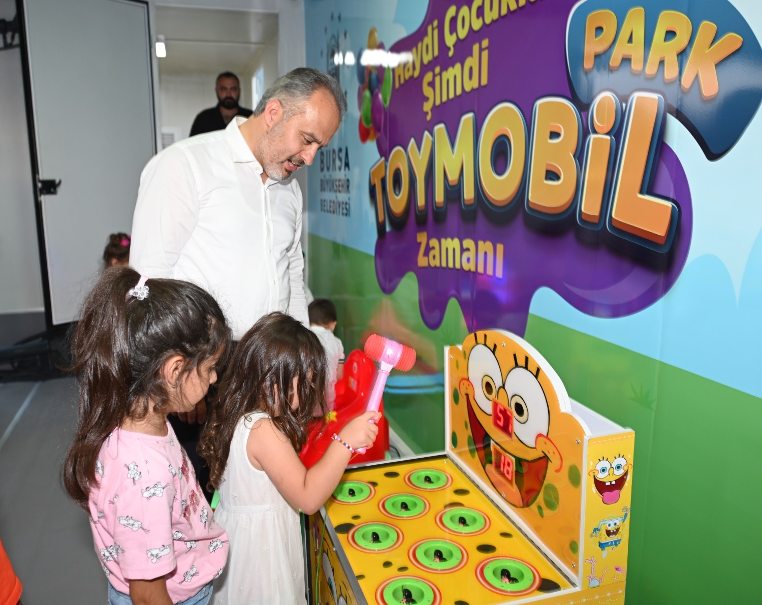 ‘ToyMobil Park’ projesi kapsamında hazırlanan oyun tırı ve oyun parklarının ilk durağı, Hüdavendigar Kent Parkı oldu. Projeye büyük ilgi gösteren aileler, çocuklarının doyasıya eğlenmelerini sağladı. Basket atma, buz hokeyi, çekiçle vurma ve şişme oyun alanı gibi birbirinden keyifli oyuncaklarla haşır neşir olan çocuklar, unutulmaz bir gün geçirdi. Bursa Büyükşehir Belediye Başkanı Alinur Aktaş da ‘projenin ilk gününde’ aileleriyle birlikte alana gelen minikleri yalnız bırakmadı. Çocuklarla birlikte basket atıp buz hokeyi oynayan Başkan Aktaş, miniklerin eğlence dolu anlarına ortak oldu.