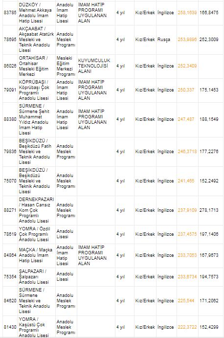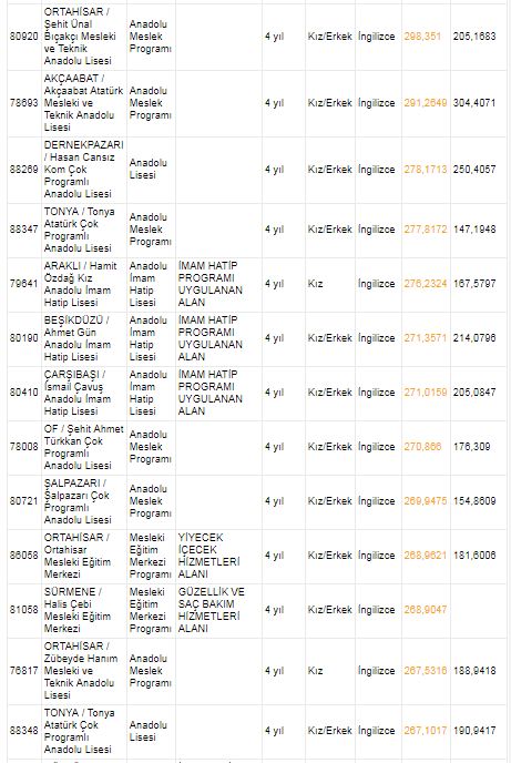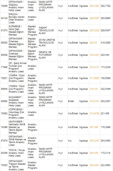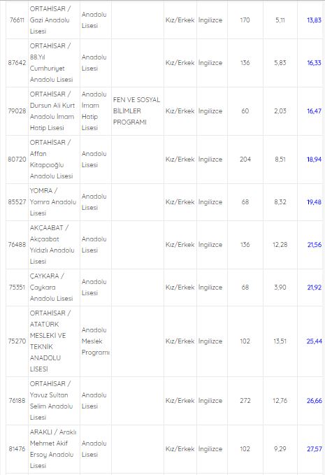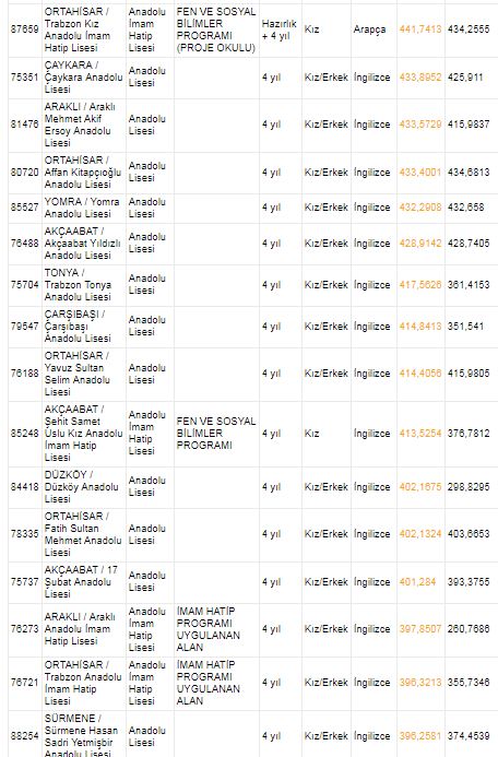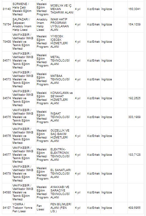 Trabzon Anadolu Lisesi ile sağlık meslek lisesi puanları | Trabzon 2018 lise kontenjanları
