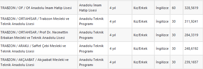 Trabzon liseleri taban puan ve yüzdelikleri için tıklayınız...