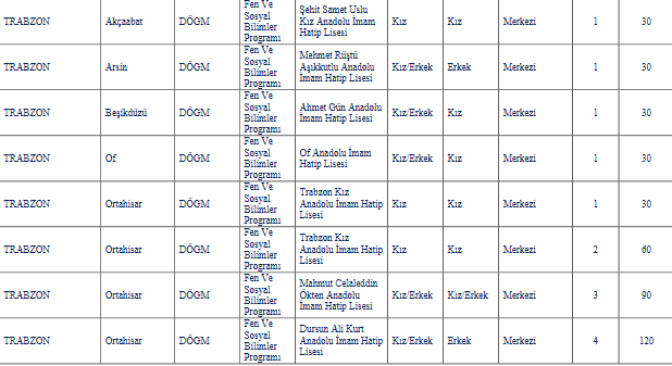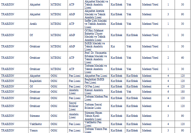Trabzon liselerinin kontenjan kapasitesi ne kadar?