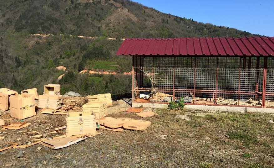 Önceki gece geç saatlerde yine saldıran ayının görüntüsü kameralar tarafından kaydedildi. Ayının arı kovanlarına ulaşmak için çaba sarf ettiği ve pençeleriyle demir parmaklıklara vurduğu görüntülere yansıdı.