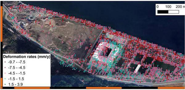 Trabzon’da, stadyum ve şehir hastanesi inşaatının yer aldığı deniz dolgusu üzerine araştırmalar yürüten Prof. Dr. Ertan Gökalp ile öğretim üyesi Fırat Altıntaş'ın uluslararası dergide yayımlanan bilimsel makalesinde, Avrupa Uzay Ajansı’na ait ‘Sentinel-1’ uydusundan elde edilen 3 yıllık verilere göre, dolgunun yılda 9,7 milimetre çöktüğü, bazı alanların ise yılda 3,9 milimetreye kadar yükseldiğine yer verildi.