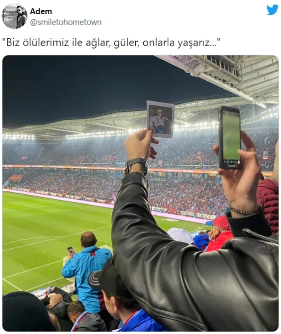 Bordo mavili bir taraftar, şampiyonluk maçı olarak nitelendirilen mücadelede cebinden bir yakınının fotoğrafını çıkarttı. Telefonuyla bu anı fotoğraflayan taraftarın görüntüsü sosyal medyada binlerce kez paylaşıldı.