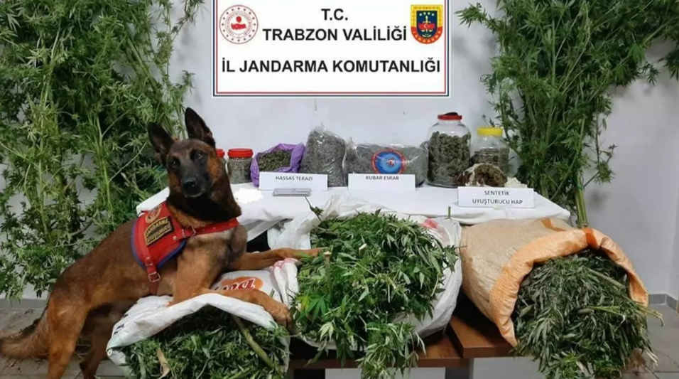 Alınan bilgiye göre, Trabzon İl Jandarma Komutanlığı Narkotik timlerince Ortahisar ilçesindeki Yeşilyurt mahallesinde ve Akçaabat ilçesinin Kavaklı mahallesinde uyuşturucu madde bulunduğu tespit edildi. Şüpheli şahıslara yönelik yapılan fiziki takip sonucu Akçaabat İlçe Jandarma Komutanlığı, Ortahisar İlçe Jandarma Komutanlığı ve Jandarma Narkotik Timleri'nin yanı sıra narkotik madde tespit köpeği Limon'un da katıldığı eş zamanlı operasyon düzenlendi. Operasyonda G.K. (36), S.P. (30), Ö.P (24), H.P. (36) ve C.Ö. (44) isimli şahıslar gözaltına alınırken, ev ve eklentilerinde yapılan aramada 41 kilogram 954 gram kubar esrar, 22 kök kenevir bitkisi, 4 adet sentetik uyuşturucu hap ve 2 adet hassas terazi ele geçirildi. Gözaltına alınan 5 şüpheli şahıs hakkında adli işlemlerinin sürdüğü öğrenildi.