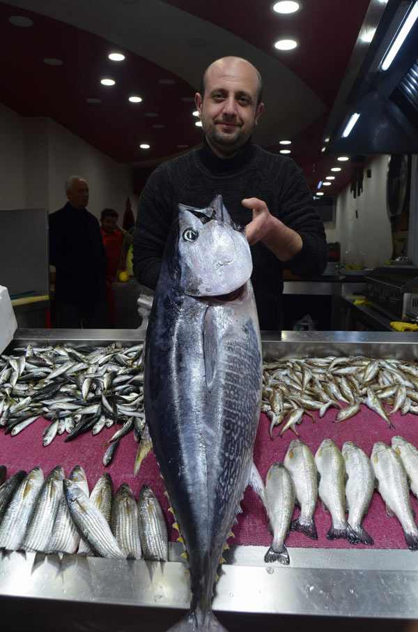Akdeniz’de avlanıp Trabzon’da satışa çıkartılan orkinos tezgaha sığmadı.