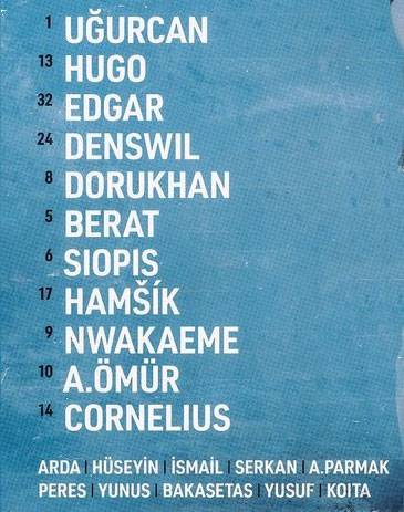 Uğurcan, Dorukhan, Edgar, Vitor Hugo, Denswil, Berat, Siopis, Hamsik, Abdülkadir Ömür, Nwakaeme, Cornelius