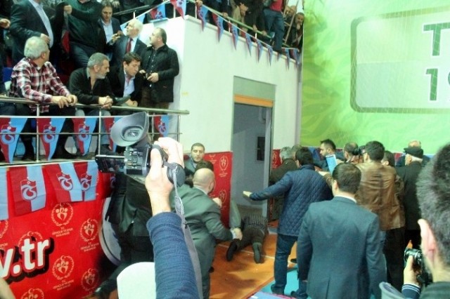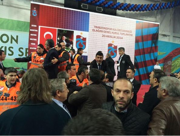 Yönetim Kurulu Sabri Sadıklar'ın Divan Başkanlığı'nı genel kurula sunarken, muhalefet ise avukat Ali Sürmen'in Genel Kurul'a divan Başkanı olarak başkanlık etmesini istedi. Ancak, yönetimin sunduğu Sabır Sadıklar'ın genel kurula başkanlık edeceği Trabzonspor Genel Sekreteri Köksal Güney tarafından açıklanmasının ardından salon bir anda karıştı. Saygı duruşu ve İstiklal Marşı'nın okunmasıyla tartışmalar yatışsa da bu kez iki taraf arasında yumruklu kavga çıktı.