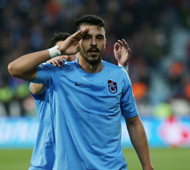 Bordo-Mavililere galibiyeti getiren Aytaç, golün ardından asker selamı verdi. / FOTO: AA