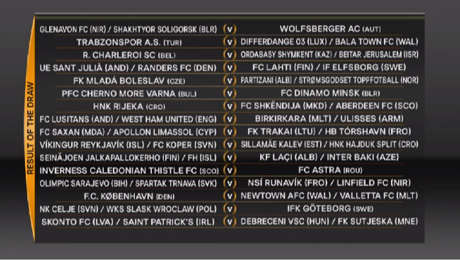 UEFA Avrupa Ligi 2. ön eleme turunda eşleşmeler şöyle: