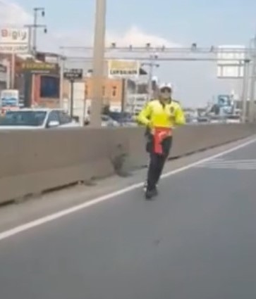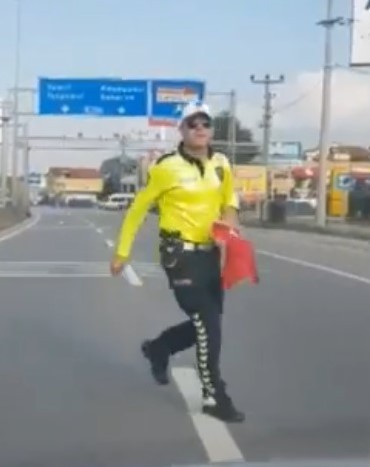 Trafiği durduran polis ekipleri koşarak yerden aldı! Sosyal medyada beğeni toplayan anlar