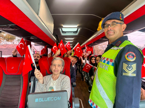 Yolcular da bayrak hediye eden ekipleri alkışladı.