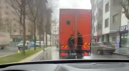 Esenyurt hareket halindeki halk otobüsüne tutunan 2 çocuk hayatını tehlikeye attı. Bir başka olayda ise, kamyonun arkasına tutunan iki çocuk tehlikeye davetiye çıkardı. Trafikteki tehlikeli yolculuklar cep telefonu kamerasıyla görüntülendi.
