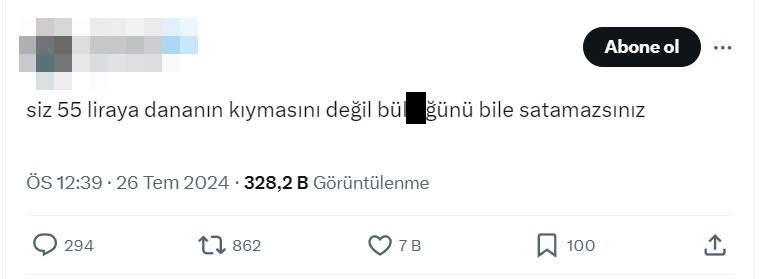 Özel’in bu vaatleri sosyal medyada alay konusu oldu. Vatandaşlar CHP liderinin geçtiğimiz dönemlerde bol bol saçtığı ama tutmadığı vaatleri hatırlatarak, “Siz 55 liraya dananın kıymasını değil, bü….nü bile satamazsınız” yorumlarında bulundu.