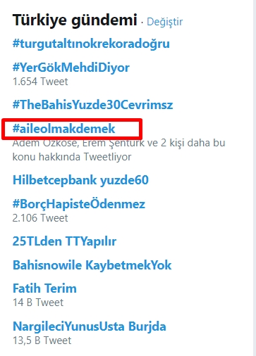 TRT Belgesel'in anlamlı belgeseli 'Aile Olmak' sosyal medya kullanıcıları tarafından da ilgi gördü. Türkiye gündeminde ilk 10 sıraya giren #Aileolmakdemek etiketine vatandaşlar yorum yaptı.