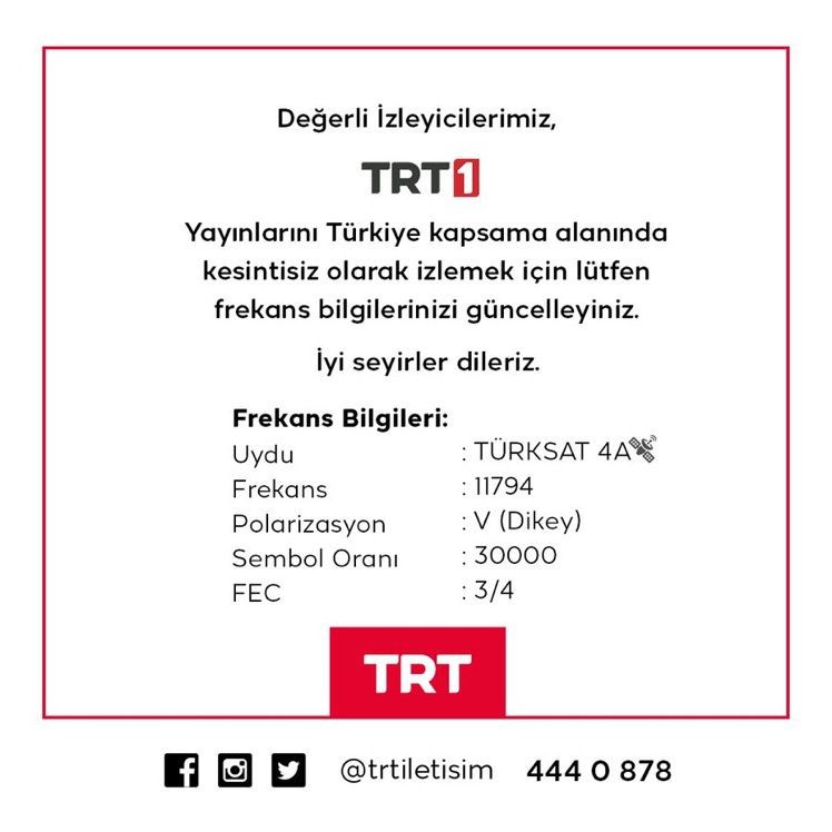 Bu çerçevede, TRT yayınlarını Türkiye’den uydudan takip eden izleyicilerin frekans bilgilerini güncellemeleri gerekiyor.