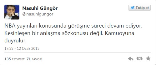 NBA yayınlarının TRT SPOR'dan yayınlanacağı iddiası ile ilgili TRT Haber Daire Başkanı Nasuhi Güngör Twitter hesabından açıklama yaptı.