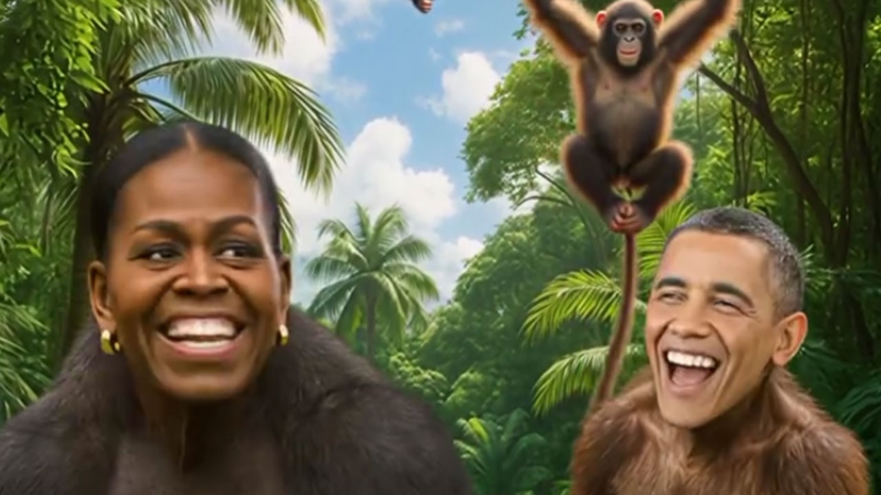 2020 seçimlerinin oy makineleri aracılığıyla çalındığına dair iddialara yer veren videolu paylaşımının sonlarında, Obama çiftinin yüzlerinin maymun bedenlerine giydirildiği görüldü.