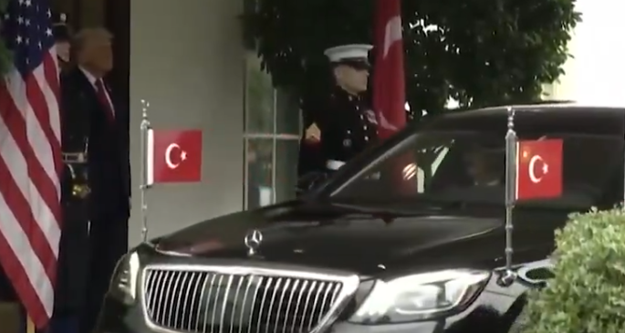 Trump, saat 18.31’de Beyaz Saray’ın kapısında Erdoğan’ı karşılamak için beklemeye başladı.