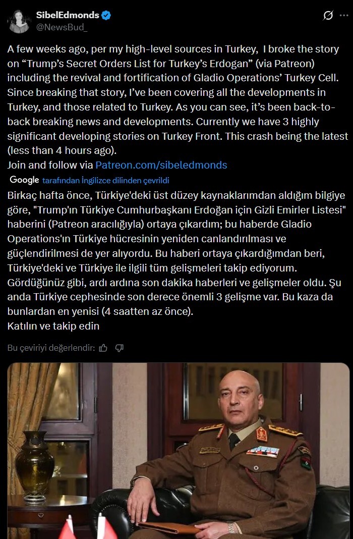 Eski FBI çalışanı Türk kökenli Sibel Deniz Edmonds, son 23 gündür yayımladığını belirttiği analizlerde; Trump yönetimi içindeki neo-muhafazakâr çevrelerin Türkiye Cumhurbaşkanı Recep Tayyip Erdoğan’a yönelik Eylül 2025’e ilişkin “gizli planları”, Türkiye içinde ve çevresinde yürütüldüğünü savunduğu “gerilim stratejileri”, sahte bayrak operasyonları ile Türkiye–Suriye ve Rusya hattındaki jeopolitik gelişmeleri ele aldığını söyledi.