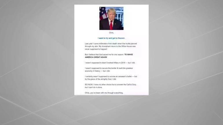 Trump’ın destekçilerine gönderdiği e-postalarda da dini söylemler dikkat çekti. Mesajında, “Geçen yıl o kurşun derimi deldiğinde ölüme milimetrelerce yaklaşmıştım. Beyaz Saray’a muzaffer dönüşümün asla gerçekleşmemesi gerekiyordu” ifadelerini kullanan Trump, sözlerini “Tanrı’nın beni tek bir sebepten dolayı kurtardığına inanıyorum: Amerika’yı tekrar büyük yapmak!” şeklinde noktaladı.